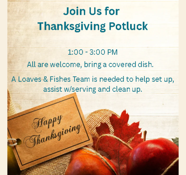Thanksgiving Day Potluck - Thursday, November 27th - 1-3 PM